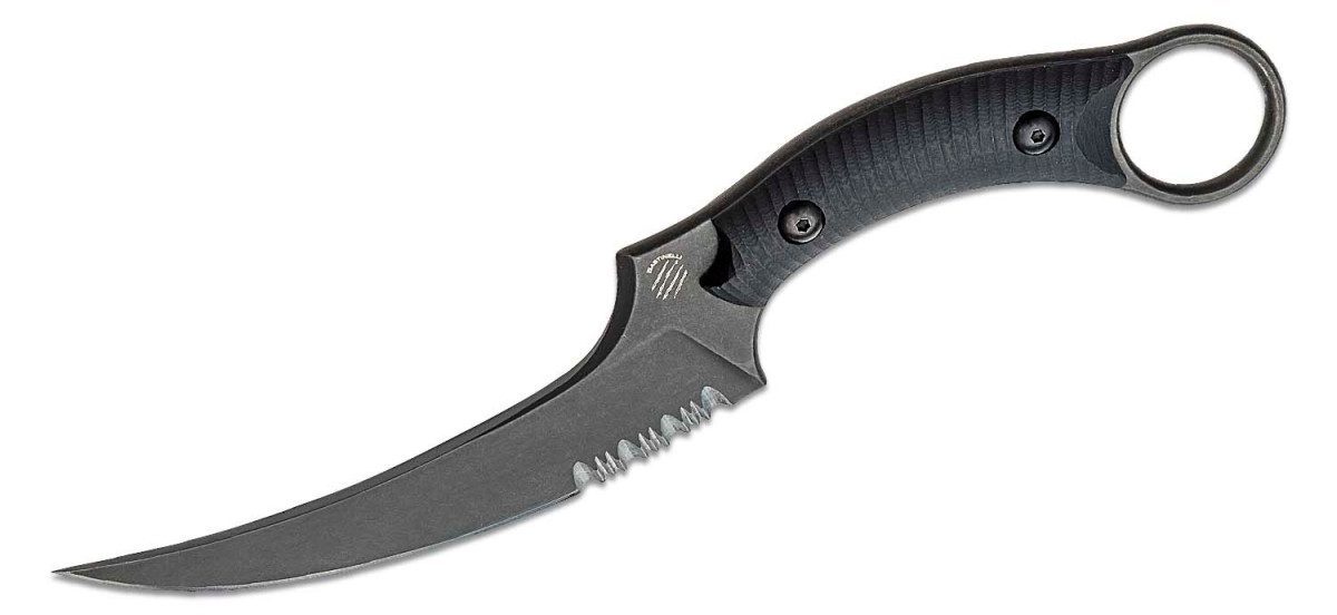 In collaboration between Bastinelli Creations, Funker Tactical, and Doug Marcaida The Mako fixed blade! An evolution of Doug’s original PicoloMako design which became the Mako folder and now the Mako fixed blade; blade measures 4.625″ in length, made from N690Co stainless steel with a black PVD stonewashed finish. With contoured black G10 handle scales and it has a one-inch diameter pinky ring for maximum security during tactical maneuvers. Kydex sheath included with a Tek-Lok style retention clip so you can carry it many different orientations depending on your preference.