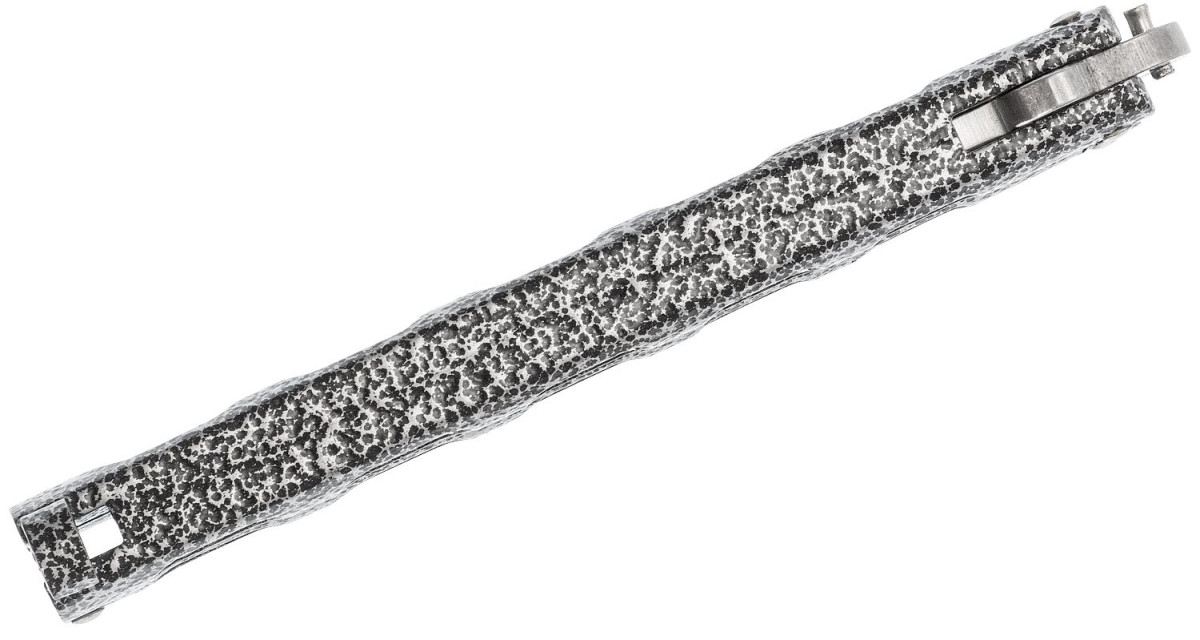 Bear & Sons (BC114TR) Bali-Song/Butterfly, 4″ 440C Satin Clip Point Trainer Blade, Silver Crackle Zinc Handle, Latch Lock