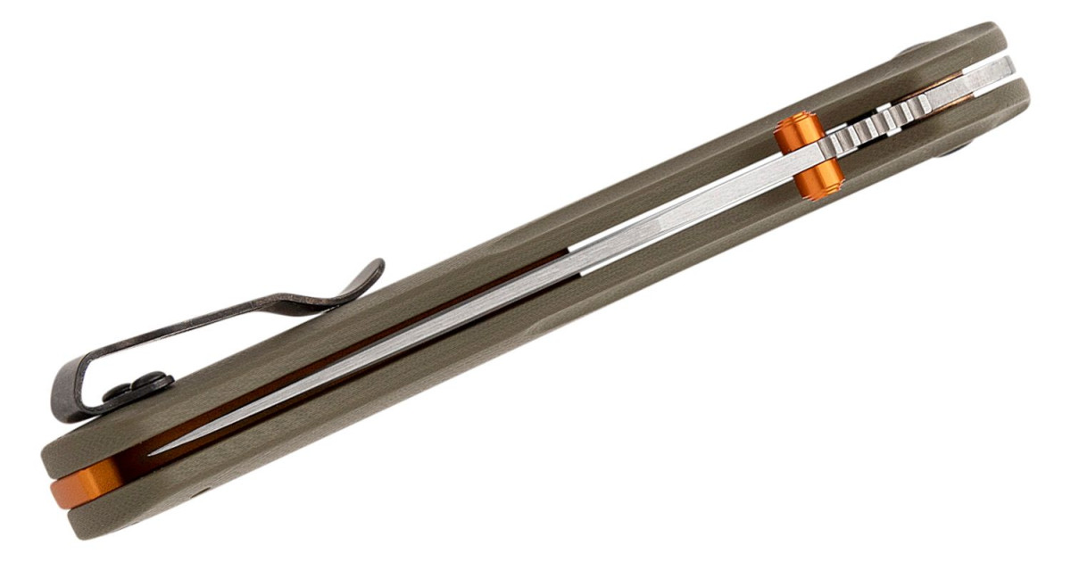 Handle: OD Green G-10 with orange anodized aluminum barrel spacers