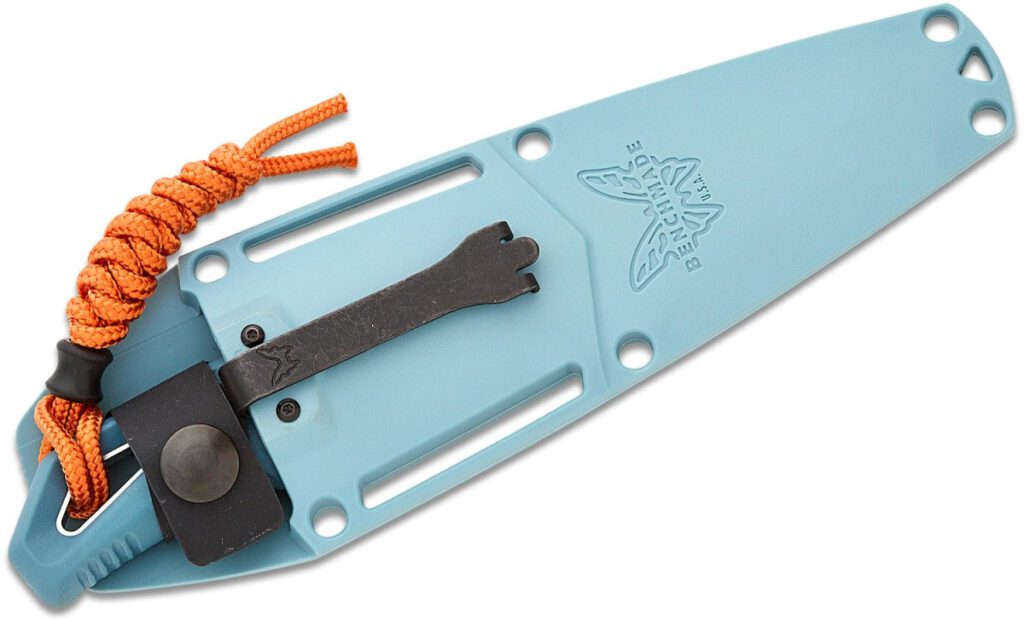 Benchmade (18050) “Intersect” Fixed Blade, 2.68″ CPM-Magnacut Stonewashed Drop Point Blade, Depth Blue Santoprene Handle, Sonar Gray Injection Molded Sheath