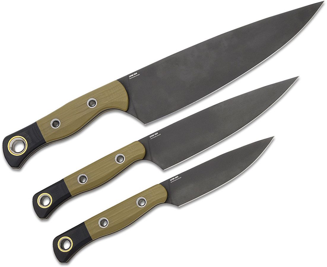 Benchmade (4000BK-01) 3 Piece Kitchen Set, CPM-154 Black DLC Blades, OD Green G10 Handle with Black G10 Bolster