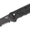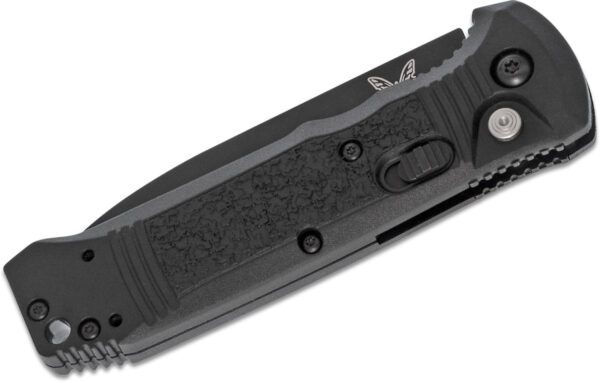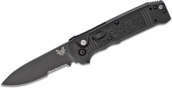Benchmade (4400SBK) “Casbah” Automatic Folder, 3.4″ CPM-S30V Black DLC Partially Serrated Drop Point Blade, Black Textured Grivory Handle, Push Button Lock