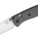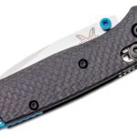 Compact with a touch of class. For those looking to elevate their everyday carry, look no further than the all-new 533-3 Mini Bugout. Taking cues from its larger counterpart, the 533-3 makes the leap to CPM-S90V super steel and milled carbon fiber handle, featuring a blue anodized aluminum back-spacer and blue thumb studs. Merging signature lightweight utility with ultra-premium materials, the 533-3 Mini Bugout sets a new standard for this popular line of sub-compact EDC pocket tools.