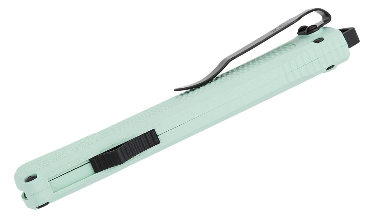 Benchmade (5370BK-03) “Shootout” Dual Action OTF, 3.51″ CPM-CruWear Black DLC Tanto Blade, Sea Foam Grivory Handle