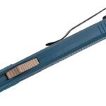 Benchmade (5370FE-01) “Shootout” Dual Action OTF, 3.51″ CPM-CruWear FDE CerakoteTanto Blade, Crater Blue Grivory Handle