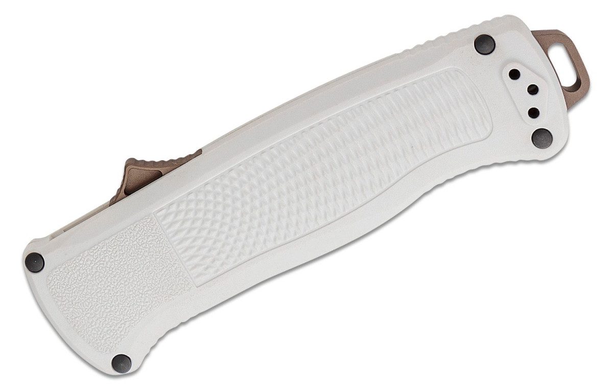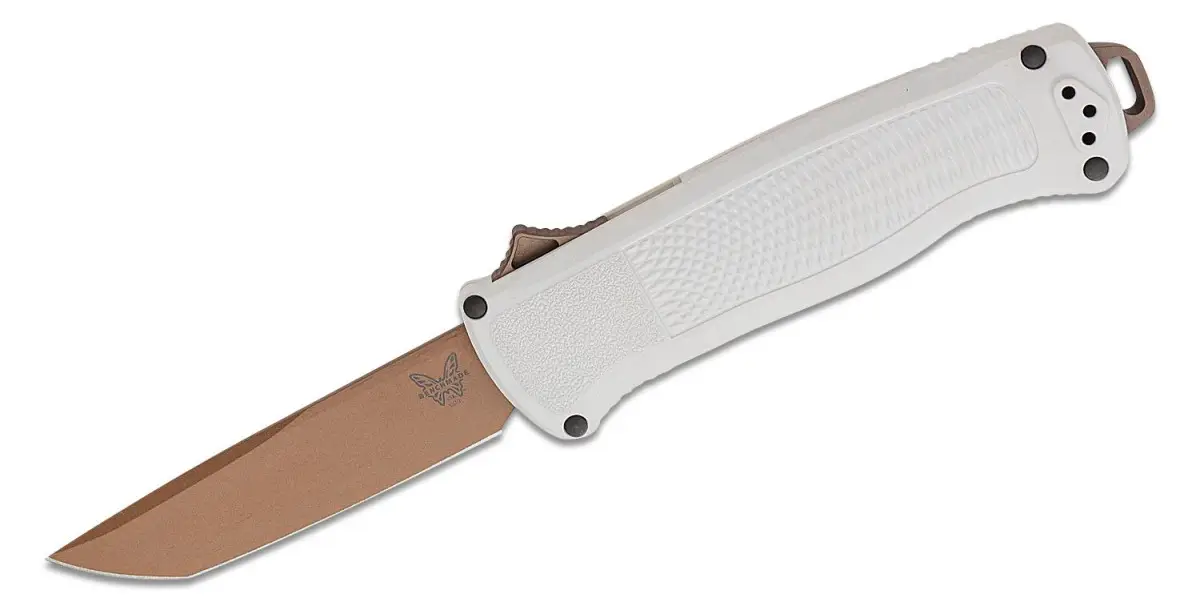 Benchmade (5370FE-02) “Shootout” Dual Action OTF, 3.51″ CPM-CruWear FDE CerakoteTanto Blade, Cool Gray Grivory Handle