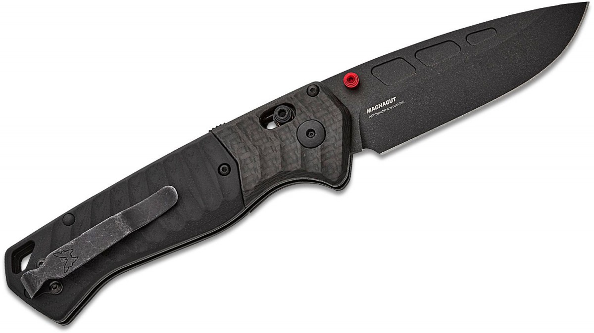 For the outdoor enthusiast who prefers to carry a hard-core workhorse folder for camping tasks and survival experiences, the 593BK-01 P.S.K.™ is your Personal Survival Kit in one tough and rugged lightweight bushcrafting tool. Built sturdy with full liners and outfitted with a textured carbon fiber bolster and black G10 handle housing a strong, corrosion resistant CPM-MagnaCut blade with a black Cerakote finish, the palm-filling, all-black P.S.K.™ includes rapid and reliable AXIS Assist actuation with integrated spine safety and a dedicated striking choil at the base of the blade for fire starting with a ferro rod. If you like to carry an auto outdoors but are restricted by your region, the 593BK-01 P.S.K.™ is the perfect alternative for efficient and ambidextrous one-hand deployment.