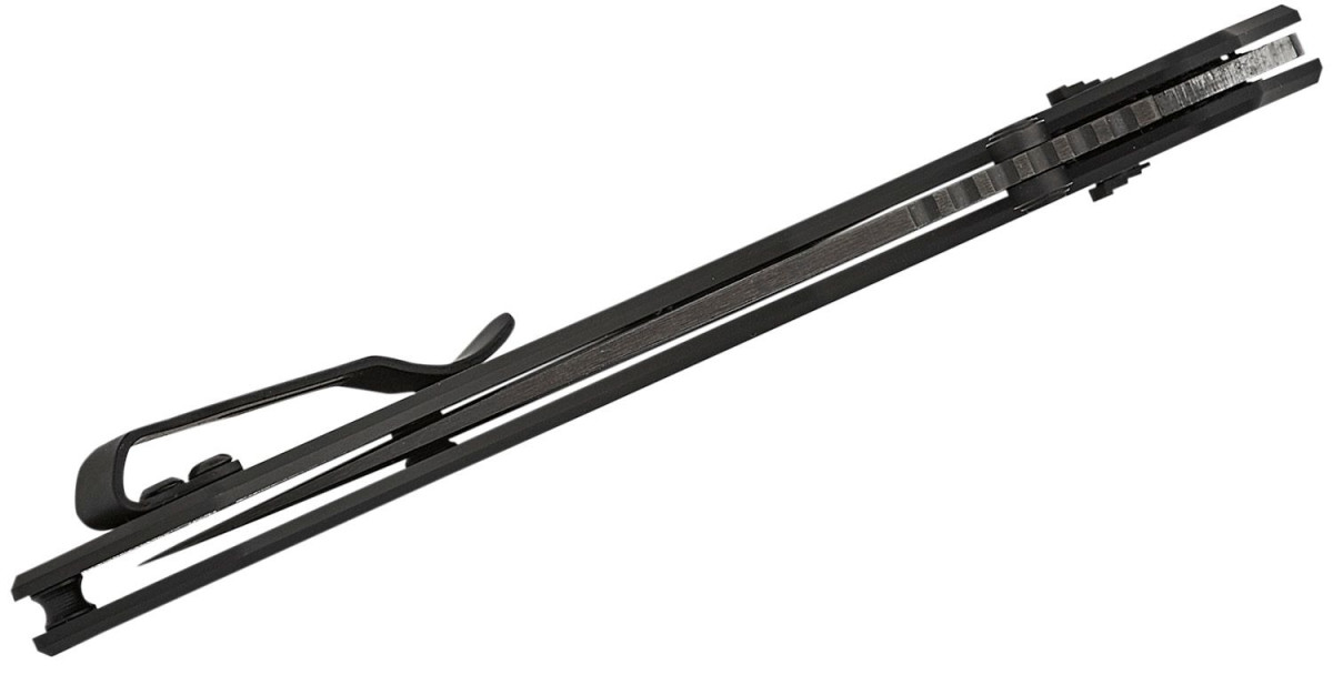 Ultra-thin, incredibly lightweight, and extremely strong, the low profile 748BK-01 Narrows pushes the boundary of EDC style and performance with futuristic, minimalist design, premium materials, and high-tech engineering. The all-black dark variant balances matte and polished details with matte black DLC Titanium handle scales mixed with a polished black DLC M390 drop-point blade and polished black DLC pivot and pocket clip. The 748BK-01 utilizes our Torsion AXIS® mechanism and thrust bearings for buttery smooth blade actuation. This precision EDC is beyond imagination.