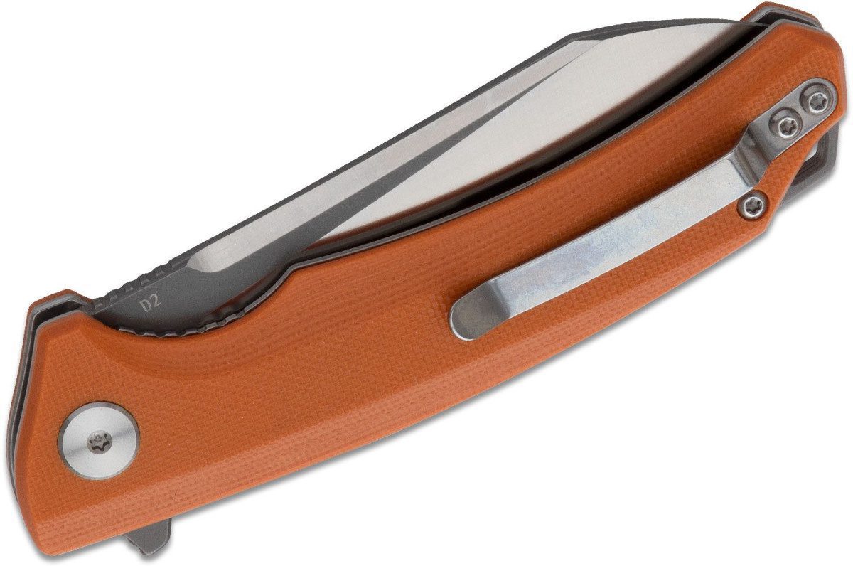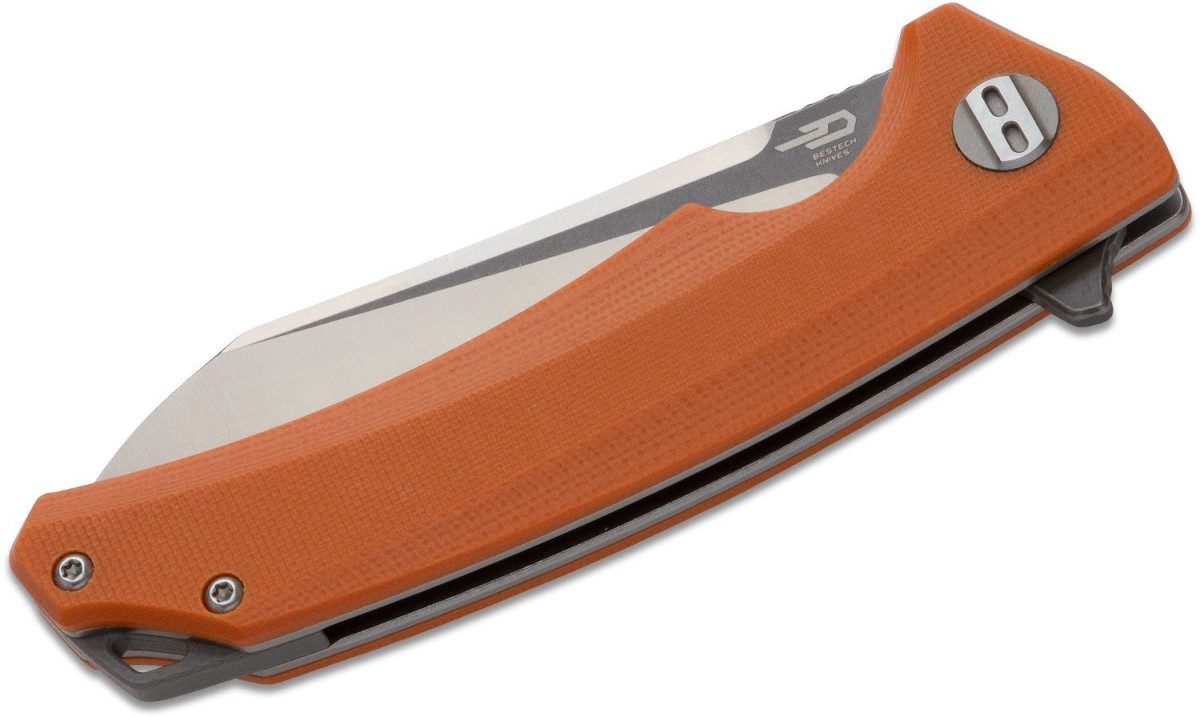Another solid entry into Bestech’s line of D2 flippers, the Texel is a collaboration knife between Bestech and A Purvis Blades. The two-tone finished D2 tool steel blade has a sweeping sheepsfoot design with a large amount of belly and a smooth profile. The blade deploys quickly and smoothly thanks to the ceramic ball bearings in the pivot assembly that Bestech has perfected. The handle scales are made from durable G10 that has a lightly textured finish that gives a solid grip. A large finger groove and smooth bevels add to the already great ergonomics of this knife. A stainless steel pocket clip and extended spacer with lanyard hole top off the features.