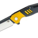 Bestech (BTKG46A) “Rockface” Manual Folder, 3.38″ D2 Two-Tone Satin and Black Wharncliffe Blade, Black and Yellow G-10 Handle, Liner Lock