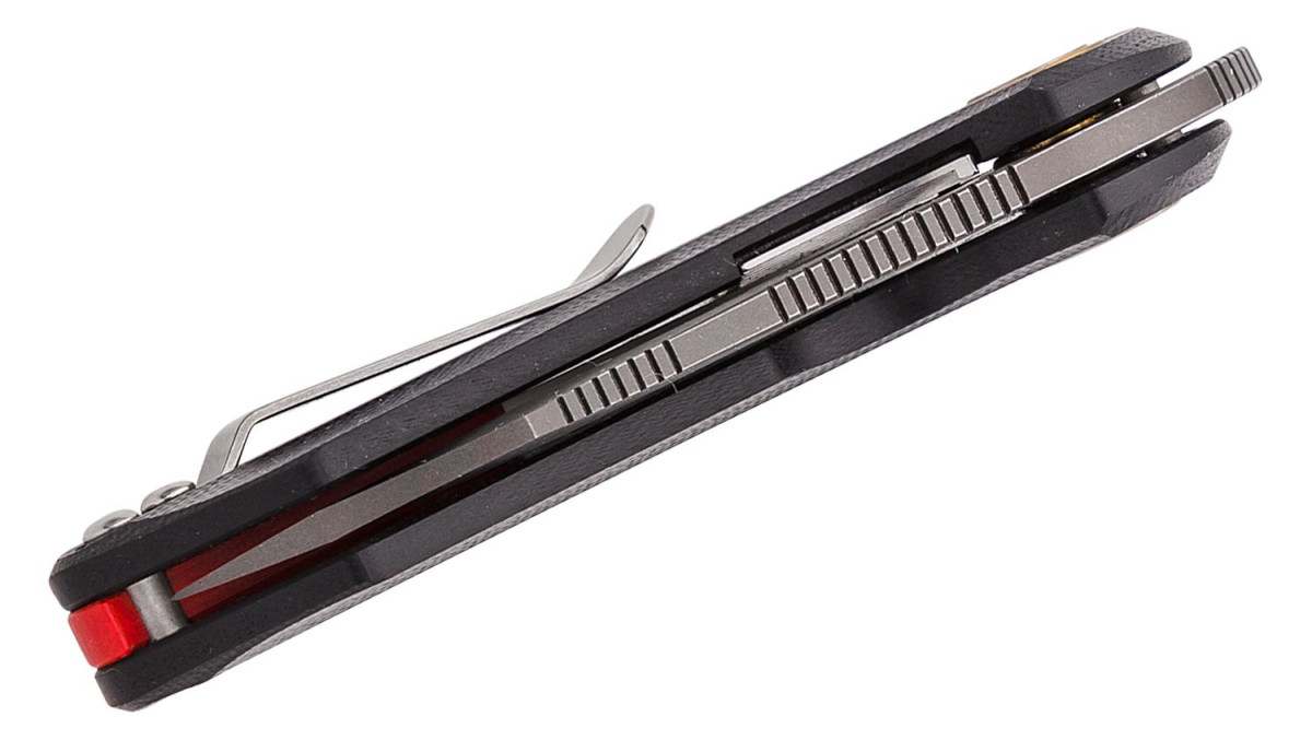The Bihai front flipper designed by Ostap Hel is a knife unlike any other. From its eccentric appearance to the incredibly smooth action, the Bihai is a nice knife and will become someone's absolute favorite - that we can guarantee. Add in the hawkbill blade which is extremely effective at opening boxes and mail and this knife is a near-perfect utility piece. The G10 handles are slightly grippy, allowing for a strong grip in most conditions. The finger choil allows the user to get a full four-finger grip on the handle, which is very impressive for a blade this size. The bearing pivot and sharp detent make for some buttery smooth, lightning-fast action and the milling around the locking area allows for easy manipulation of the lock. In a reverse grip, the Bihai could be pressed into last-ditch tactical use if you just punch at your assailant. The other 99.99% of the time, this knife is just a great EDC tool to have by your side.