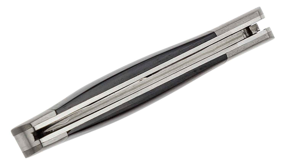A high-quality and elegant knife. The blade and bolsters consist of 37 layers of Damascus steel. The handle is made of dark, grainy ebony, which goes great with the exquisite look of this knife. The blade has a nail pull and a back lock. A sophisticated knife which will excite even you in everyday use with its reliability.