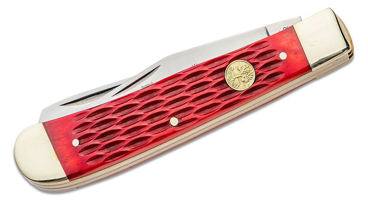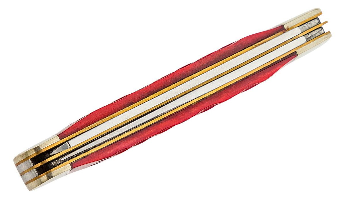 The Boker Traditional Series Trapper offers all the best components. Featuring nickel silver bolsters, brass linings and high carbon stainless steel blades. For those who don’t mind using two hands.