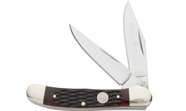 The highly successful Traditional Series has been taken to a new level. Not only have we added a wide variety of patterns and handle materials, we’ve also upgraded the blade steel to rugged D2. True classics with modern materials, at an affordable price. The classic Copperhead. Closed length: 3.75″. With jigged brown bone handle scales.