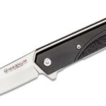 The Magnum Japanese Iris is straightforward and clean with a striking unadorned elegance. The slim pocketknife is clearly based on Japanese designs and has a blade of stainless 440A steel. It opens easily with a flipper and is secured with a sturdy linerlock. With a lanyard hole and clip (tip-up).