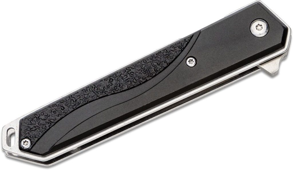 Boker Magnum (01RY322) “Japanese Iris” Manual Folder, 3.27″ 440C Satin Drop Point Blade, Black Textured Aluminum Handle, Liner Lock