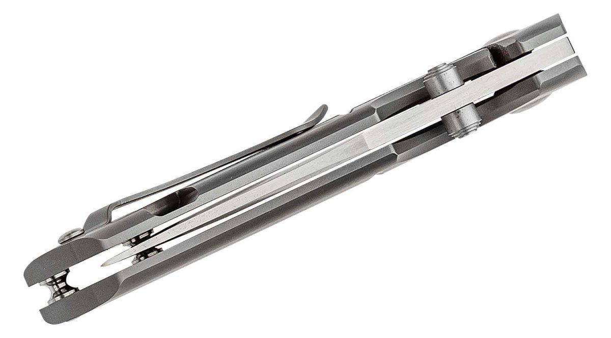 The modern Boker Plus Jive by Brian Efros scores as a high-quality EDC supplied with clear lines and an extremely ergonomic design. The full-time American knifemaker from Colorado has been designing and producing his own knives since 2008 and is now known far beyond the country’s borders for his innovative folders. Full order books, perfect workmanship and individual implementation mean that his handcrafted pieces fetch top prices internationally. The Jive is provided with a satin-finished clippoint blade made of D2, which is opened by a detachable thumb stud and locked by a reinforced framelock. The distinctive ricasso and the decorative milling on the handle scales made of matte titanium set visual accents. Supplied with a practical titanium clip and a high-quality nylon case for storage.