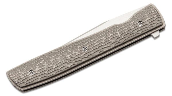 Brad Zinker always manages to uncover new facets of the popular Boker Plus Urban Trapper. As a master of his craft, the US knife designer knows better than anyone else how to reinvent the existing designs of the gentleman’s knife with clever combinations of materials. The Boker Plus Urban Trapper Jigged Titanium comes with a surface-ground and ball-bearing VG-10 blade with a hairline finish, which opens with a flipper and is secured by a robust linerlock. A modern accent is set by the titanium handle, which pays homage to the countless classics with jigged-bone handle scales. This not only places the knife right up front visually, but also significantly enhances the feel of the pocket-knife. The stainless steel deep-carry clip allows for tip-up (r) carry and is finished with a stonewash finish.