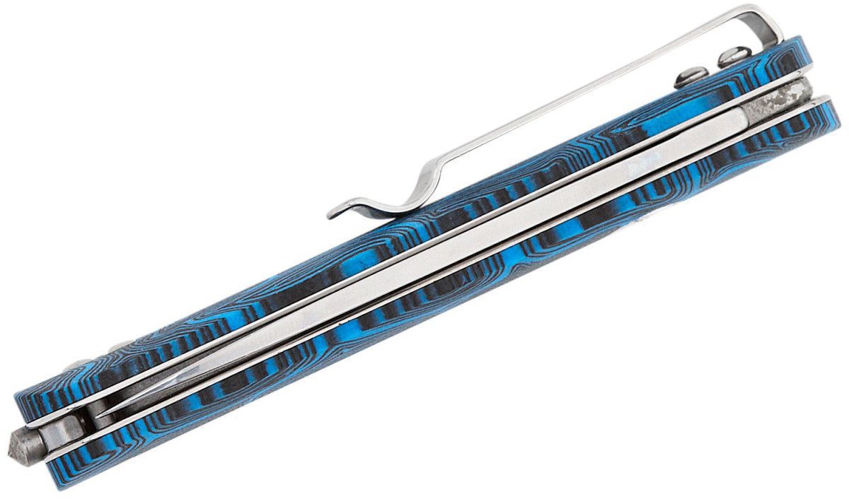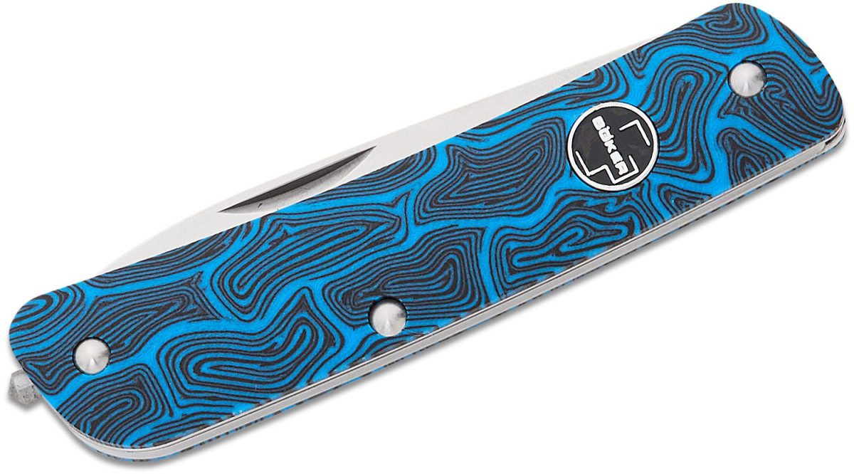 The handy Boker Plus Tech Tool expands their popular multi-function knife series with an exceptional high-end version. The versatile pocket knife with pleasantly contoured handle scales made of blue Damast G10 always lies securely in the hand thanks to the impressive texturing. The combination of Boker’s many years of know-how, the use of high-quality materials such as Sandvik 12C27 as blade steel, stainless steel liners, and the screwed construction set the Boker Plus Tech Tool apart from the conventional slipjoint pocket knife, as does the integrated glass breaker. The drop point blade with a hardness of 58-60 HRC has an impressive satin finish and is opened by a nail nick. With decorative pivot screw and practical deep-carry clip (tip-up).