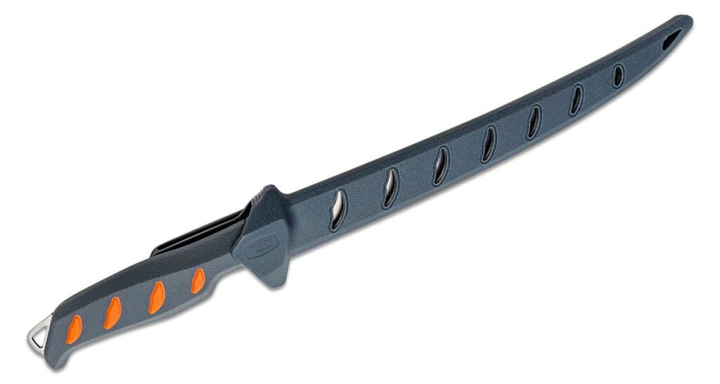 The 146 Hookset Fillet is designed to aid in all your freshwater excursions. Utilizing a glass-reinforced polypropylene with TPE rubber, this handle is crafted to provide you with an all-weather grip. The 9″ blade for this fillet is flexible, satin-finished, and crafted with 5Cr15MoV steel for excellent edge retention. Includes Injection-molded sheath has an integrated belt loop for safe, easy carry.
