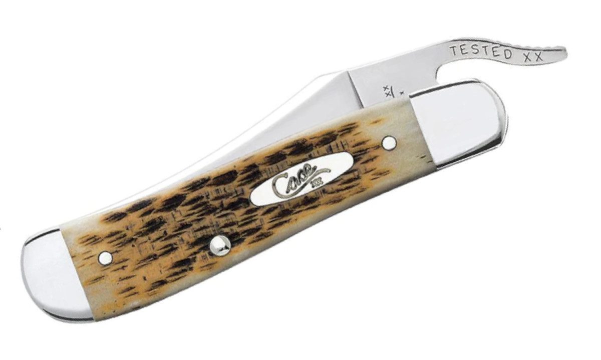 When you find something that works, you stick with it. That’s why Case keeps bringing back the Amber Bone. Its golden-amber hue and deep, dark PeachSeed jig lend themselves well to just about any knife style because of the beauty of natural bone.