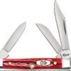 Case (10305) “Small Stockman” Non-Locking Folder, 2″/1.5″/1.5″ Stainless Steel Mirror Polish Finish Clip Point/Sheepsfoot/Pen Blades, Pocket Worn Red Bone Handle, Slip Joint