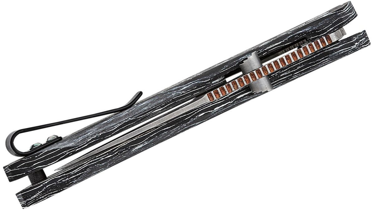 Handle Material: Black & White Marbled Carbon Fiber