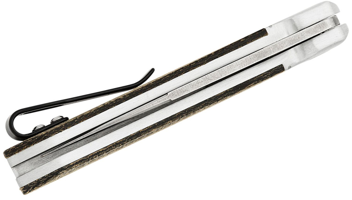 The Highbanks is a design inspired by traditional patterns, with aluminum frames and bolsters for durability while minimizing weight. The Highbanks features a classic slip joint mechanism with a half stop and durable, luxury composite and wood handle materials like Micarta and rosewood. The CPM20CV modified Wharncliffe blade has excellent edge retention with an open nail nick providing built-in access to open the blade. The steel deep carry pocket clip is essential for convenient carrying.