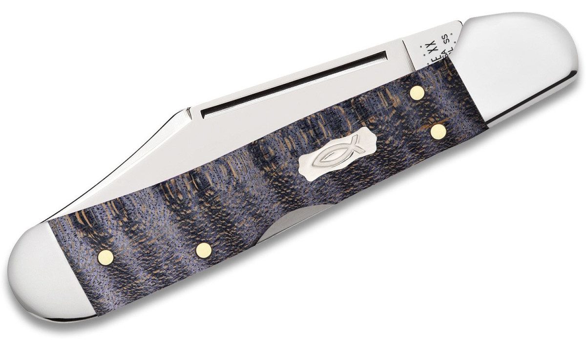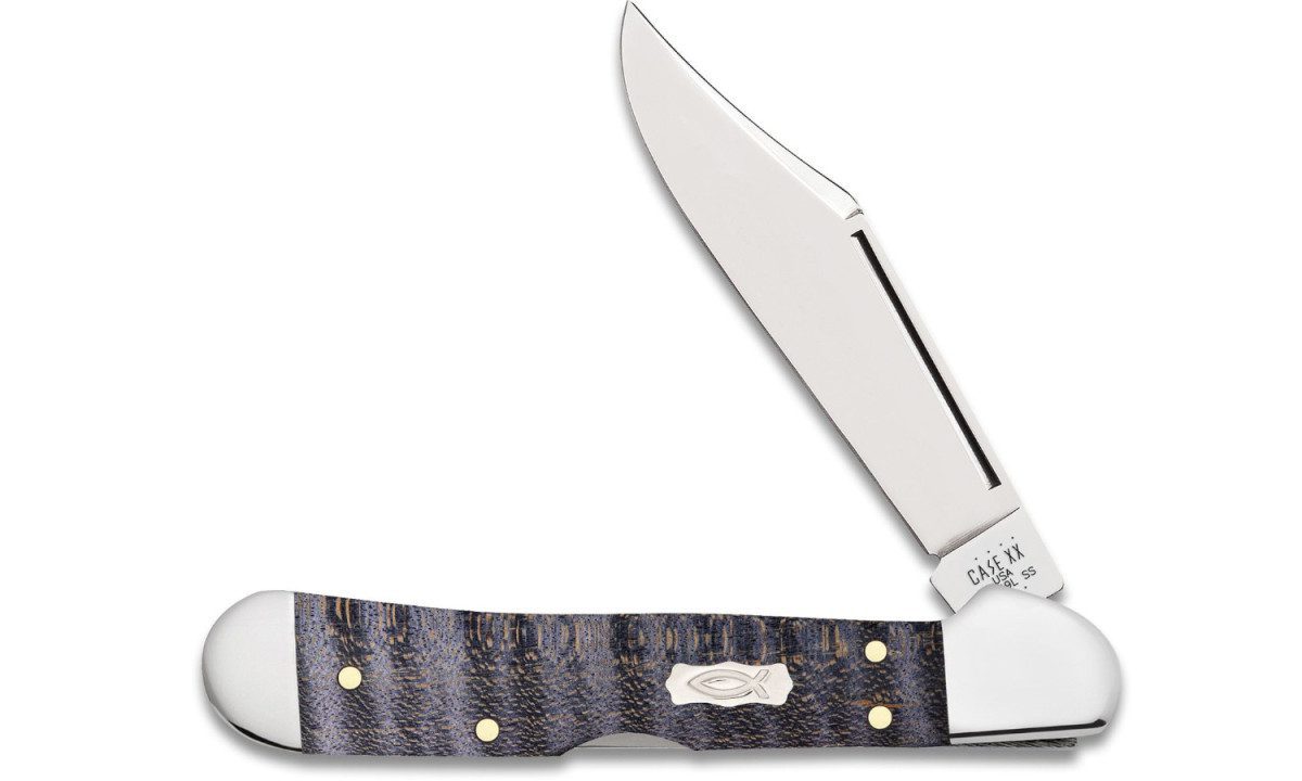 The deep purple tones of this line of curly maple Case knives combine with the nickel silver accents to make a stately and classic look for your favorite Case knife. The Copperlock knife is an original design by W.R. Case that combines elements from the Trapper and Copperhead to make a new lockback knife. The Mini Copperlock is smaller than the traditional Copperlock without compromising durability. Featuring a fully locking clip blade, this knife has the cutting power of a lockback, with the look and feel of a traditional Case pocket knife. The Clip blade is commonly used as a multi-purpose blade that makes this pocket knife great for everyday use. This durable folding knife is constructed with Case Tru-Sharp stainless steel which is a special high-carbon steel that helps the blades hold an edge longer than conventional steel. It also offers extraordinary blade strength and corrosion resistance.