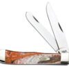 This Trapper model has an “Octoberfest” Corelon handle. The Case Trapper is one of the most iconic designs ever made. Originally designed for fur trappers (hence the name), the knife includes two blades of equal lengths. The clip point blade is intended for everyday cutting such as slicing food, cutting twine, whittling, etc. The Spey blade, as its name implies, was designed for speying animals, a process that requires a very specific cut, without cutting anything else. The design is excellent for precise cuts. For over a century, the Trapper knife has been a staple everyday carry knife.