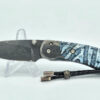 CASTLEGATE, Manual Folder, 2.375″ 416 Layer Damascus Drop Point Blade, Blue Brain Coral Handle Scales with Titanium Liners & Damascus Bolster with Diamond Inlayed Thumb Stud, Custom Leather Sheath, Liner Lock