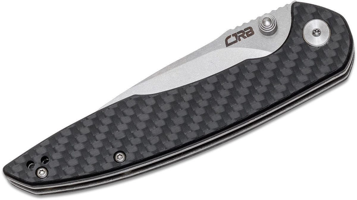 The CJRB Centros Folding Pocket Knife features a sleek drop-point style blade with a stone wash finish. The blade is crafted with durable D2 steel for practical everyday use. This pocket knife is equipped with a liner lock mechanism to keep the blade firmly in place while in use. The dual thumb stud opening device allows you to open or close the knife with either hand comfortably and safely. To improve grip, the carbon fiber handle is textured. A steel clip is attached to one side of the handle so you can carry the knife conveniently in your pocket. The Centros Folding Pocket Knife has a sophisticated silhouette and is built for long-lasting edge retention.