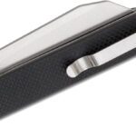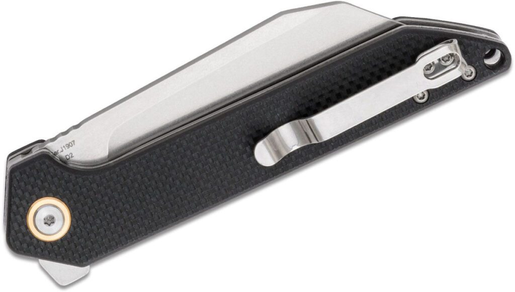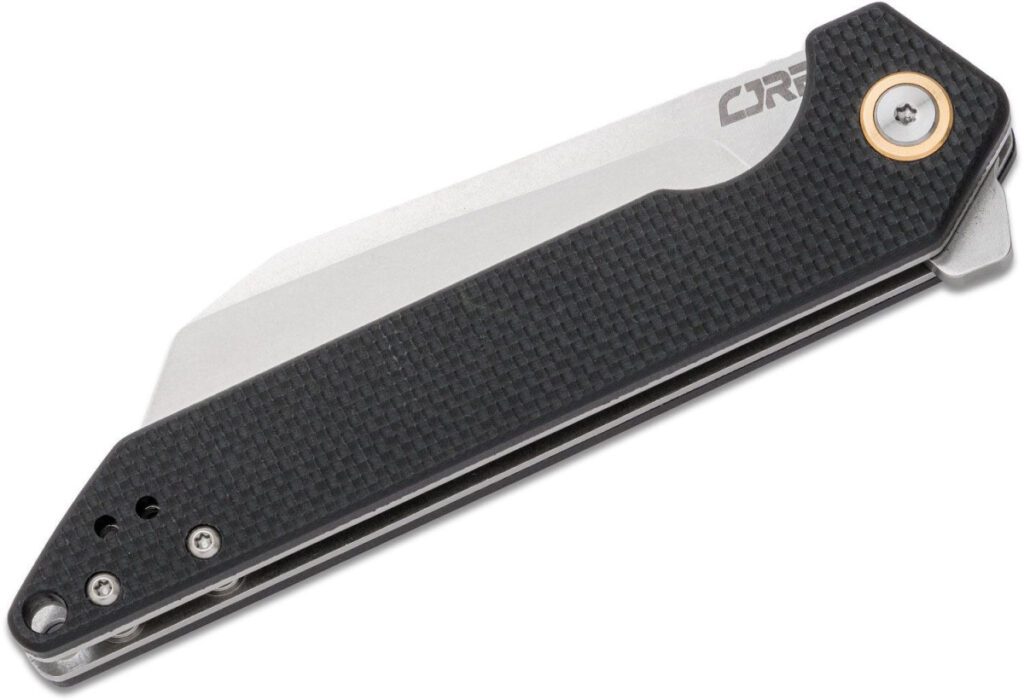 The Rampart flipper from CJRB is an unusual mix of a thin profile and a big bite in one knife. The broad Wharncliffe blade has a stonewashed finish that helps the knife resist wear. The solid blade is deployed by a rather beefy flipper tab that requires a bit of a flick of the wrist to deploy with the usual snappy lockup normally afforded by the ceramic ball bearings in the pivot. The handle is surprisingly slim and straight and offsets the weight of the blade nicely. This knife is completed with a lanyard hole and reversible pocket clip to afford multiple ways to carry it.