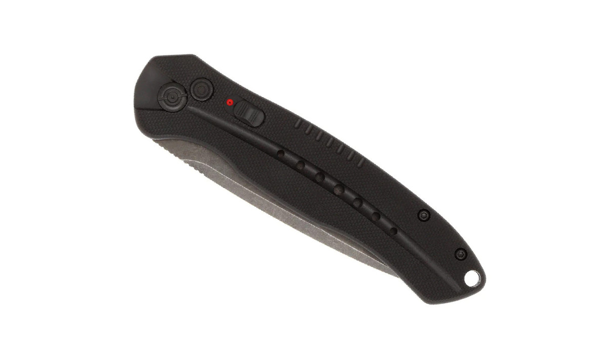 The Diablo is a Push button folding automatic. It comes equipped with G-10 scales and a black stonewash D2 steel blade. Has a sliding safety switch to prevent accidental discharge.