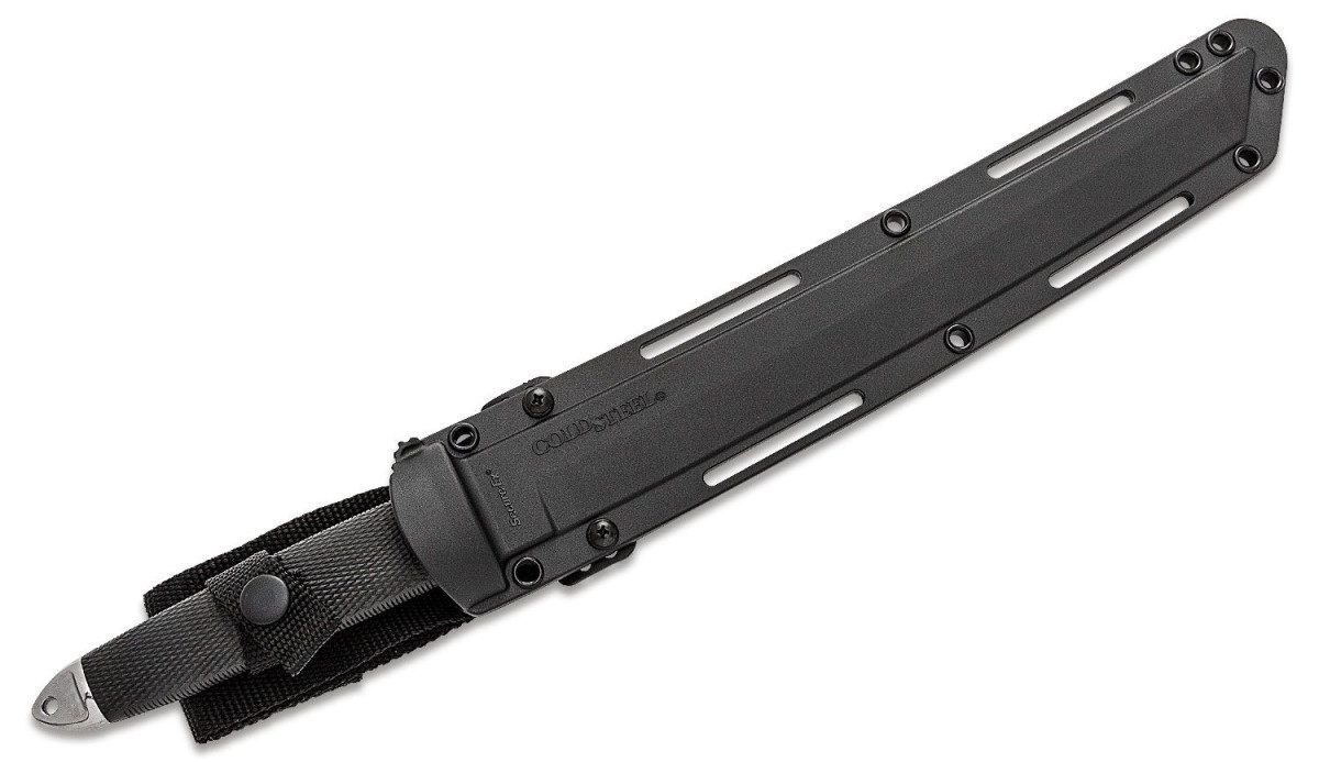 There isnt a person working in the knife industry today that knows more about the Tanto than Cold Steel does. It was, after all, Cold Steel who invented and popularized this knife style in the early 1980s. Cold Steel has spent millions of dollars persuading the public, both through advertising and live or videotaped demonstrations, of the Tantos many advantages. Cold Steel has been producing Tantos for more than 30 years now, and there is still no factory or custom knifemaker around making a Tanto that can approach the cutting, slashing or piercing power of one that is manufactured by Cold Steel. All Cold Steel Tantos feature a deep lustrous satin finish on the hollow ground blade bevels and a contrasting line grain finish on the blade flats. This technique highlights their state of the art grinding methods and emphasizes the Cold Steel Tantos unique appearance. In addition, the Tantos come with our famous flattened oval Kraton handle. The oval shape provides a solid grip and resists rolling or twisting in the hand under hard use, the kind that, over time, would destroy a lesser knife. The use of Kraton in knife handles is another Cold Steel innovation. Kraton is an unparalleled space age material that wont crack or rot and is immune to the ravages of bad weather. The tapered, solid steel pommel is another important Tanto feature that should not be ignored. Lynn Thompson designed it to concentrate the full force of a crushing blow in a small area so that even a moderately powerful blow can be remarkably effective in disarming or otherwise incapacitating an attacker. The Tanto series knives in San Mai all come with a thick, high quality Secure-Ex sheath that is sure to give years of hard service and keep your Tanto at your side, ready for action.