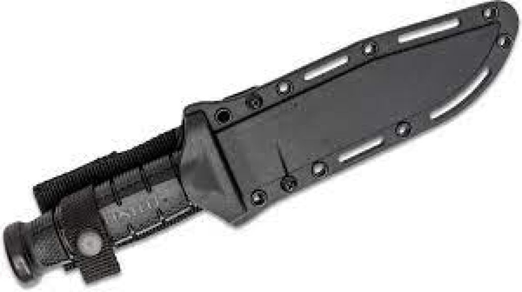 This Leatherneck model has a large clip point blade made from D2 steel with a durable black powder coating. The Cold Steel Leatherneck sports a hand-honed razor sharp clip point blade with a sabre ground edge for superb strength and cutting power. An integral guard protects the hand with double quillons that are turned slightly forward, providing excellent protection in close combat situations. The full tang Kra-Ex handle offers a high performance grip with a thick, machined butt-cap for striking. Item includes a sturdy Secure-Ex sheath with a fully detachable belt loop for secure everyday carry.