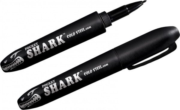 They say “the pen is mightier than the sword” – and Cold Steel makes some mighty swords, but the Pocket Shark makes for some clever competition. It’s the biggest, badest, permanent marker around! The Pocket Shark is made from a high impact polymer and features walls that are 4 times thicker than conventional markers. This means it’s built for impact and will survive the meanest blows and roughest treatment imaginable. Plus, the screw on cap will stay in place and won’t pop off like a regular marker and leak all over your clothes. Clip it to a shirt or coat pocket, or carry in your purse, pack or brief case. There’s simply no excuse not to own one!