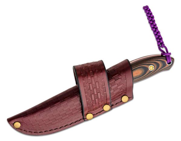 This Larry Fischer-designed fixed blade hunting knife has multiple friction grooves along the spine for optimum blade control and a stylish, multi-colored G10 handle, with exceptional fit and finish.