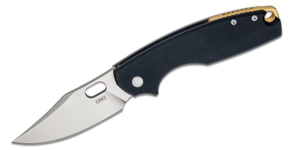 CRKT, SATIN FISNISH CLIP POINT BLADE, FOLDING KNIFE WITH THUMB HOLE AND FRAME LOCK, STAINLESS STEEL HANDLE WITH BLACK G-10 SCALE
