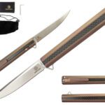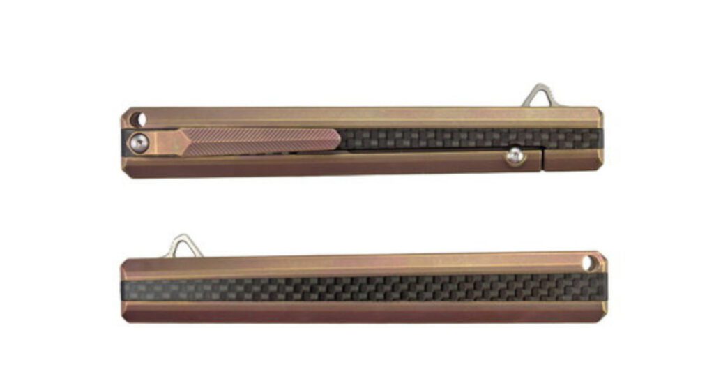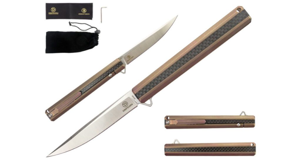 DEF-CON (TF9389-1) “Suit” Manual Folder, 3.65″, M390, Satin Brush Drop Point Blade, Bronze Titanium Handle with Carbon Fiber Inlays, Frame Lock