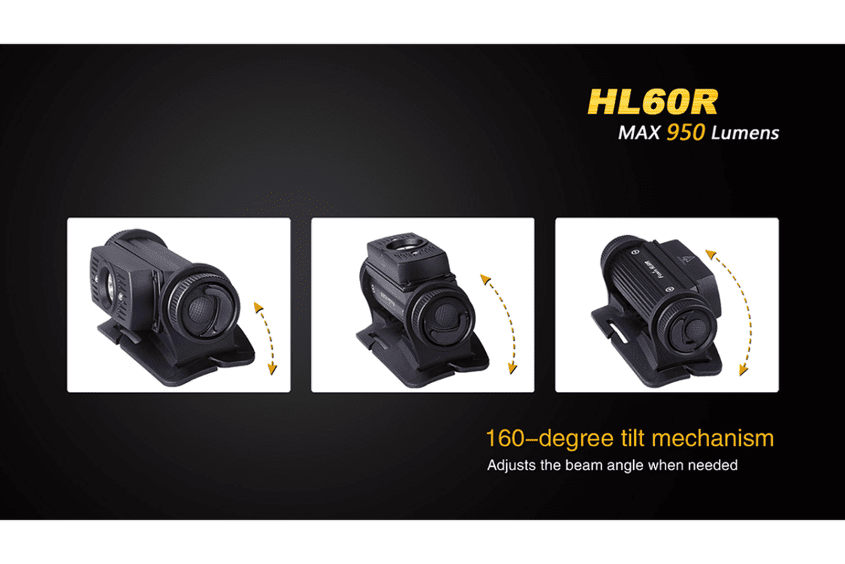 The new Fenix HL60R rechargeable headlamp features a micro USB port for go-anywhere charging. Talk about punch–the HL60R has a maximum output of 950 lumens and a beam throw of 380 feet/116 meters. The lighting power behind the Fenix HL60R is one 18650 rechargeable battery (included) which is charged WITHIN the headlamp via the included micro USB cable.