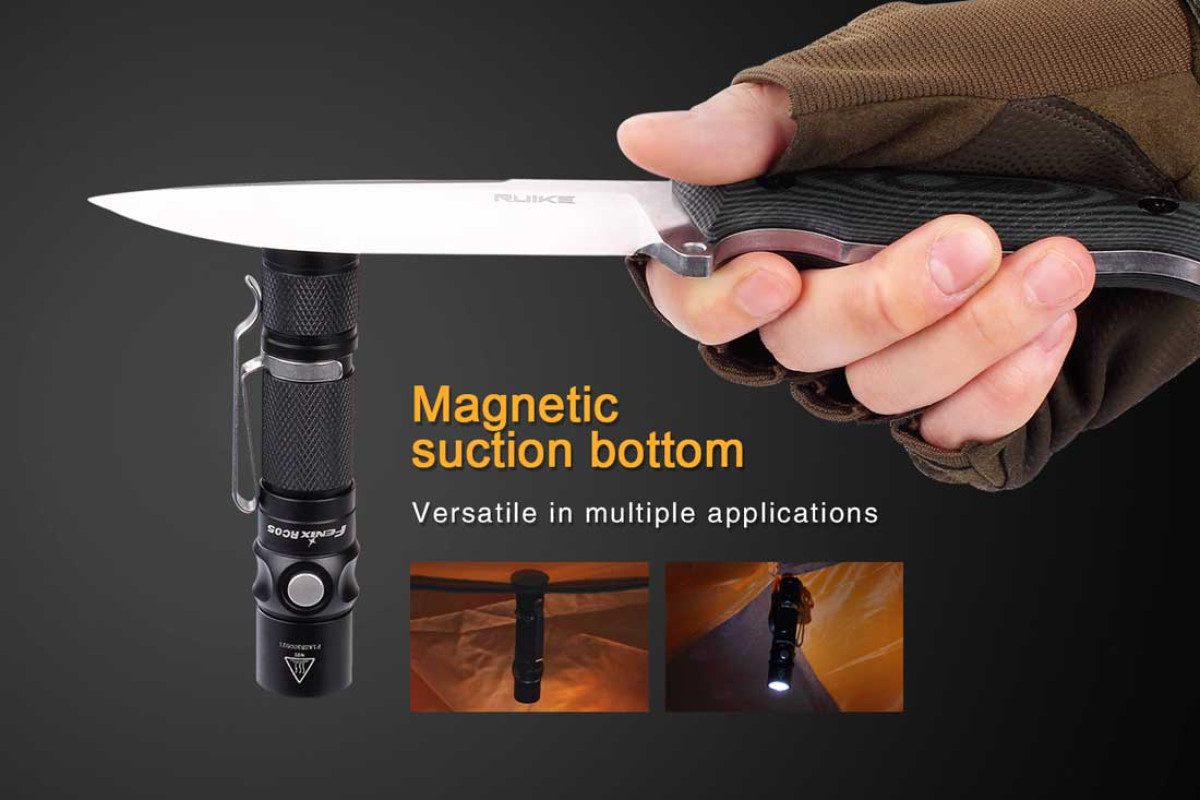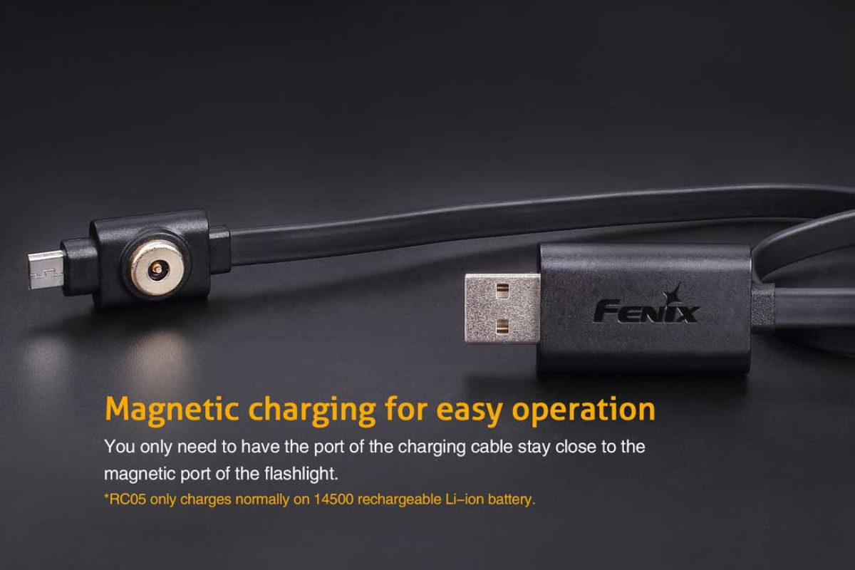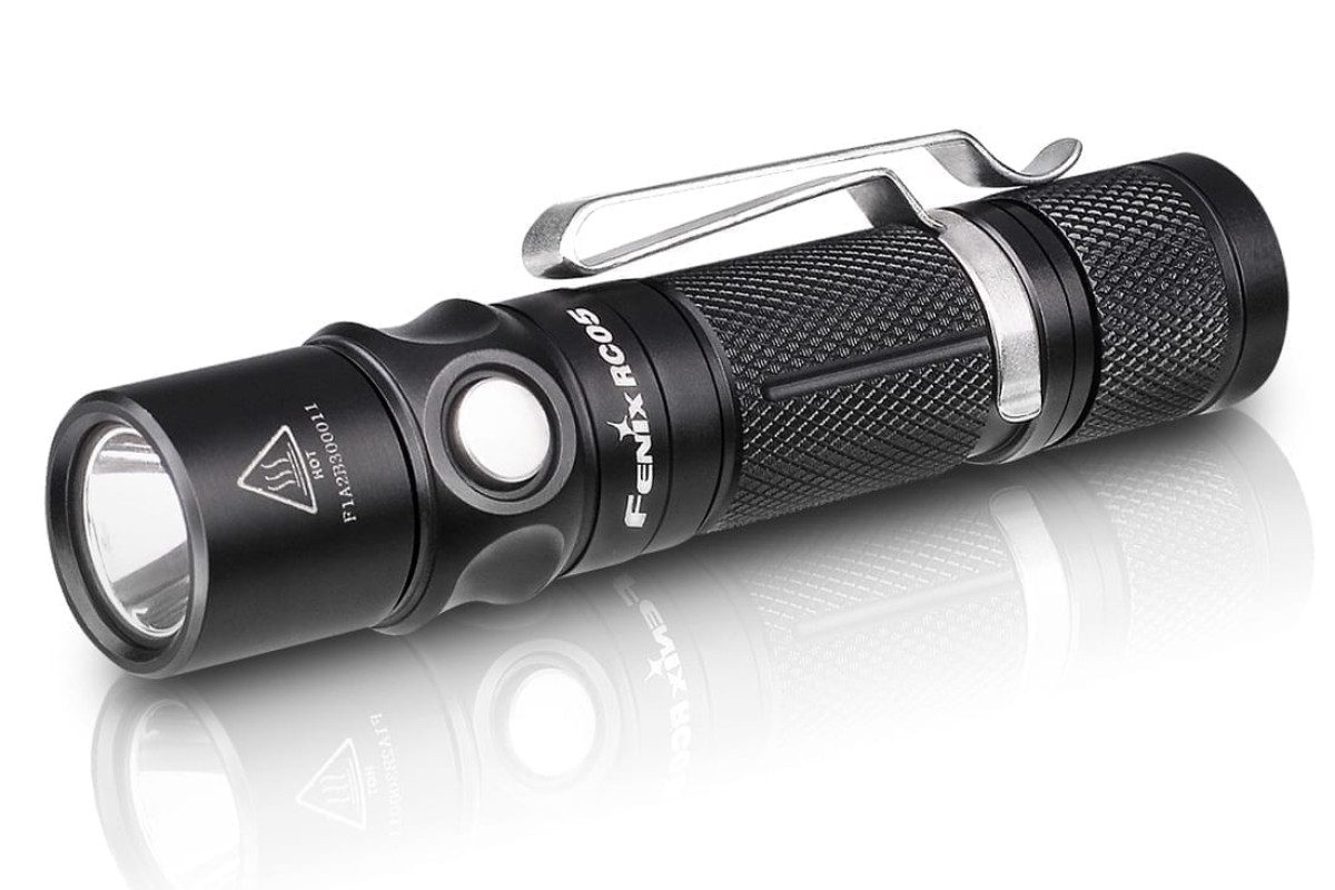 The Fenix RC05 flashlight is a must have for hiking, camping or every day carry. This rechargeable LED flashlight features a maximum 300 lumens and is powered by a single 14500 rechargeable Li-ion battery, or can use a standard AA battery as a backup at reduced performance and no recharge ability. Recharging the flashlight is easy with the magnetic, dual-purpose Micro-USB charging cable. The two-position clip is great for different carry positions and the magnetic suction bottom allows the flashlight to be mounted to metal for limitless lighting options.