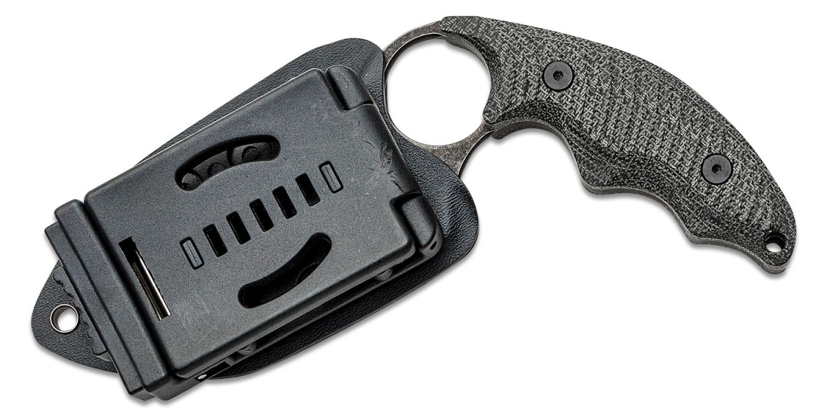 Fred Perrin (FP2103) “La Griffed” Fixed Blade, 3.50″ 440C Dark Stonewashed Spear Point Blade, Black Canvas Micarta Handle, Black Kydex Sheath