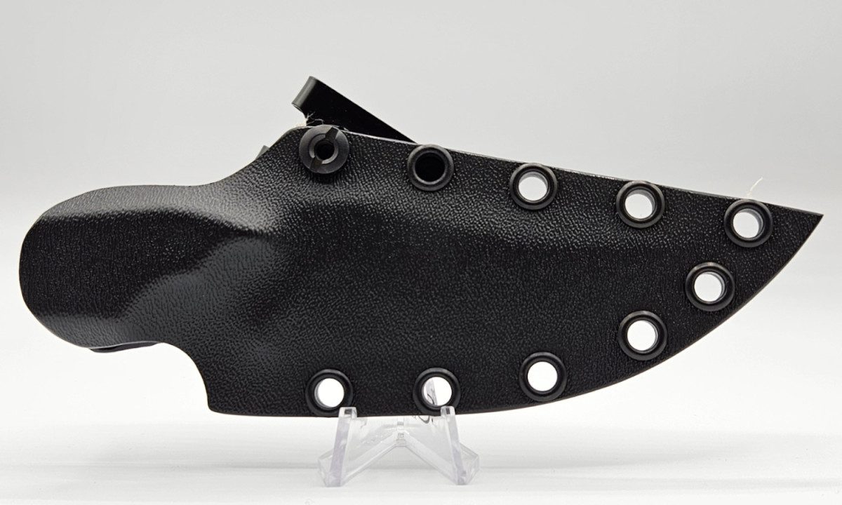 The Lowlander was designed as a fixed utilitarian knife for use in bushcraft situations and as an every day carry (EDC). Its versatile design makes this utility knife one that can be carried daily to manage any task and is perfect for outdoor use such as camping and hunting. The blade is made of S35VN steel which lends itself to less maintaince in these outdoor situations. The linen micarta handle scales are comfortable in your hand and feature a blasted finish to provide extra grip. The blades comes with a black Kydex retention sheath and belt attachment that is MOLLE compatible.