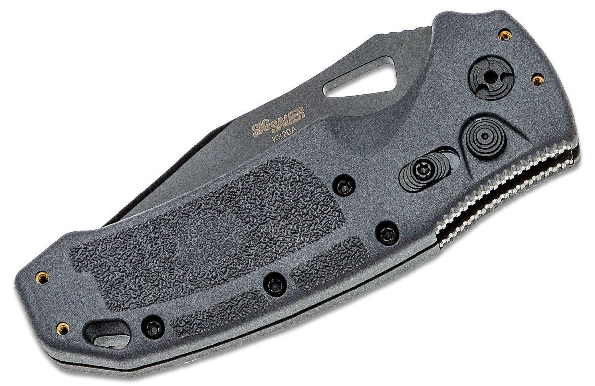 Hogue Knives has partnered together with SIG Sauer to deliver a full line of quality SIG Sauer branded knives. These fine tactical and sporting knives represent the ultimate value in tactical folders and fixed blades expressed through Hogue’s state-of-the-art manufacturing processes. Made in America by American craftsmen, a Hogue knife at your side is a trusted — and trustworthy — companion, an heirloom quality blade combining the best of old-world craftsmanship and design set in the context of modern-day, real-world applications for a tactical blade. Deployment is based around a strong, custom-designed, oversized coil spring that has been extensively tested and integrated to provide force along the pivot’s entire range of motion. The result is an automatic that kicks open with authority every time you call on it. Each knife is individually tested and laser-etched with a unique serial number before it bears the Hogue name. The K320 is designed to go hand in hand with the P320 firearm, available in Nitron black, Tactical gray, and M17/M18 coyote tan colorways. The polymer grip and texturing are mimicked here, creating an excellent lightweight grip with plenty of traction. The ergonomics are absolutely fantastic and they’ve allowed for the pocket clip to be positioned in all four corners of the knife which is pretty rare on an automatic. And then there’s the action. Hogue delivers some of the best push-button action on the market and the K320 is no different. It fires with authority so make sure you have a solid hold on the knife before actuating as the knife may go flying. An excellent thumb ramp, finger choil, and lanyard hole round out the features of this near-perfect auto knife which we think it’s poised to become one of the premier duty knives that money can buy.