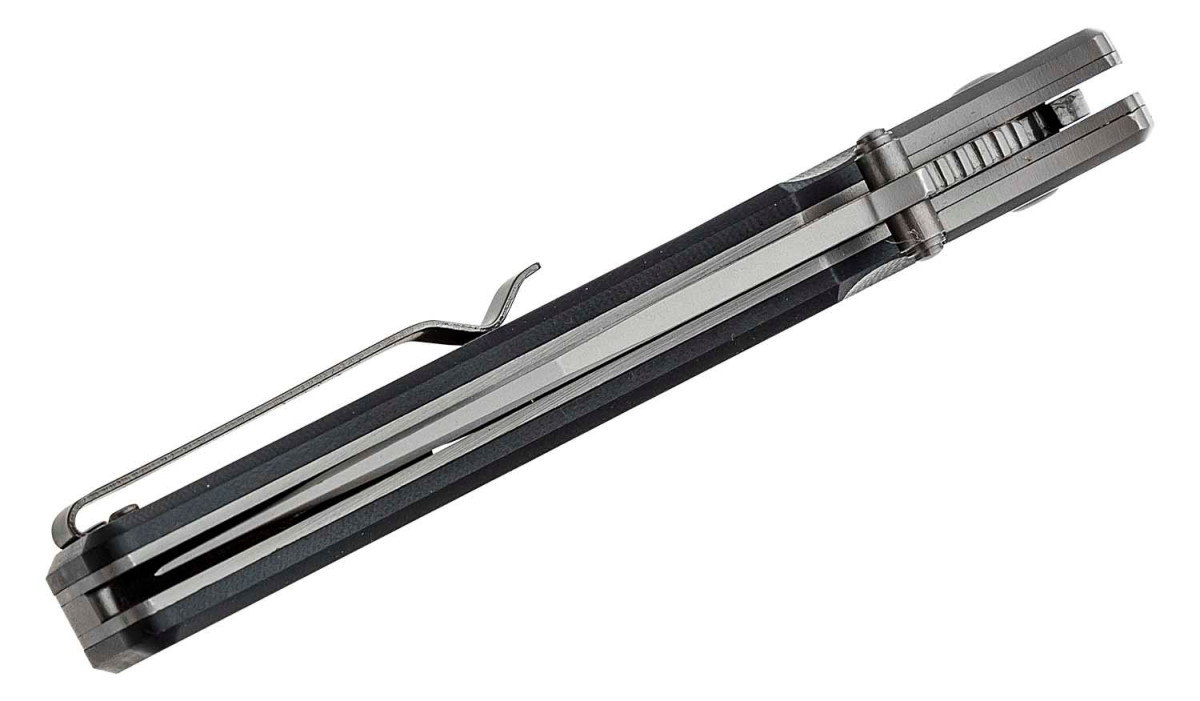 Hefty folder with G10 handle scales and gun-metal gray bolster & blade tackles the toughest tasks in style. A partially serrated blade assists in cutting looped and synthetic fabrics. Features a reversible pocket clip.