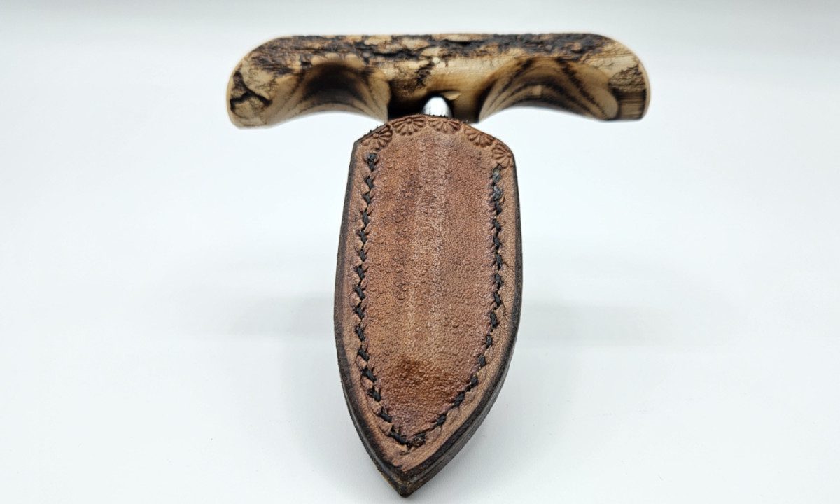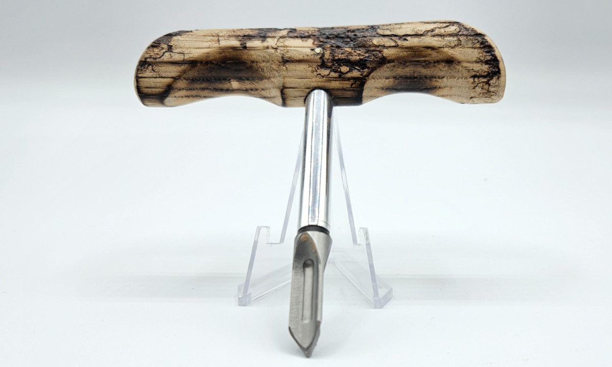 Mickey Yurco “Arrow Head Push Dagger” Fixed Blade, Twist Arrow Head Tip, Electrified Ash Wood Handle, Brown Leather Sheath