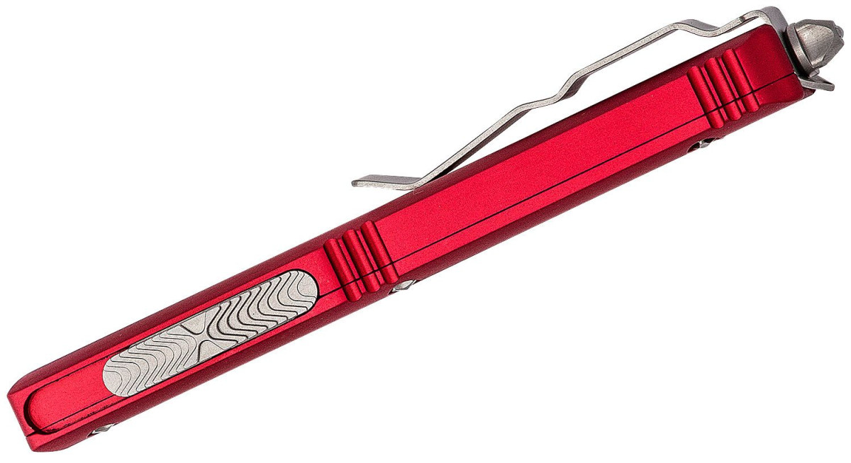 Microtech (121-10RD) “Ultratech” Dual Action OTF, 3.35″ M390 Stonewashed Drop Point Blade, Red Anodized 6061-T6 Aluminum Handle with Glass Breaker