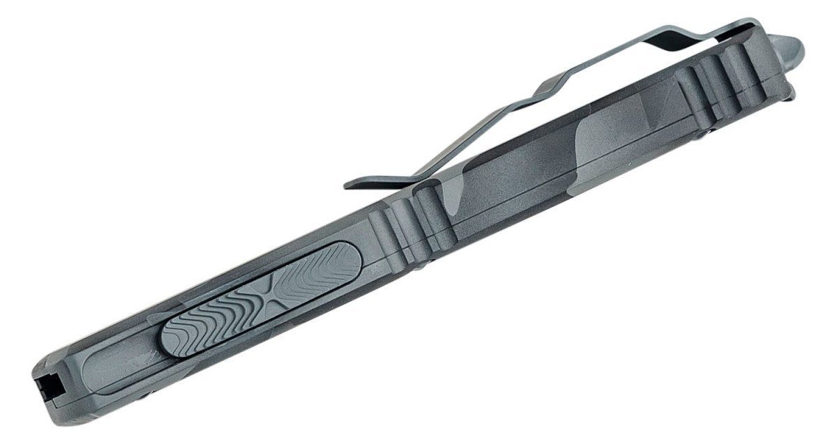 As the flagship model of the Microtech OTF lineup, the Ultratech sets the standard for Out The Front technology. Proprietary design allows the firing spring to be at rest in both the open and closed positions, drastically reducing wear on the internal firing mechanisms. The contoured chassis handle provides a light and ergonomic feel and comes in a smooth, flat finish.