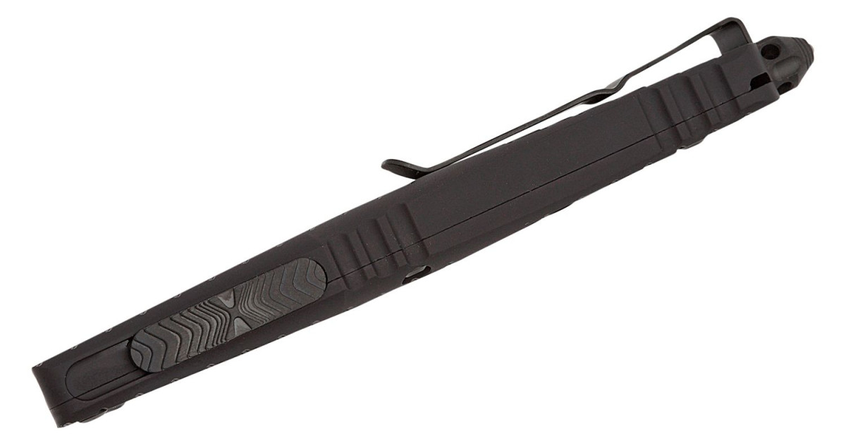 Microtech (142-1CT-DSH) “Combat Troodon Delta Shadow” Dual Action OTF, 3.81″ M390 Black DLC Fluted Dagger Blade, Black Anodized Frag Pattern Milled 6061-T6 Aluminum Handle with Glass Breaker